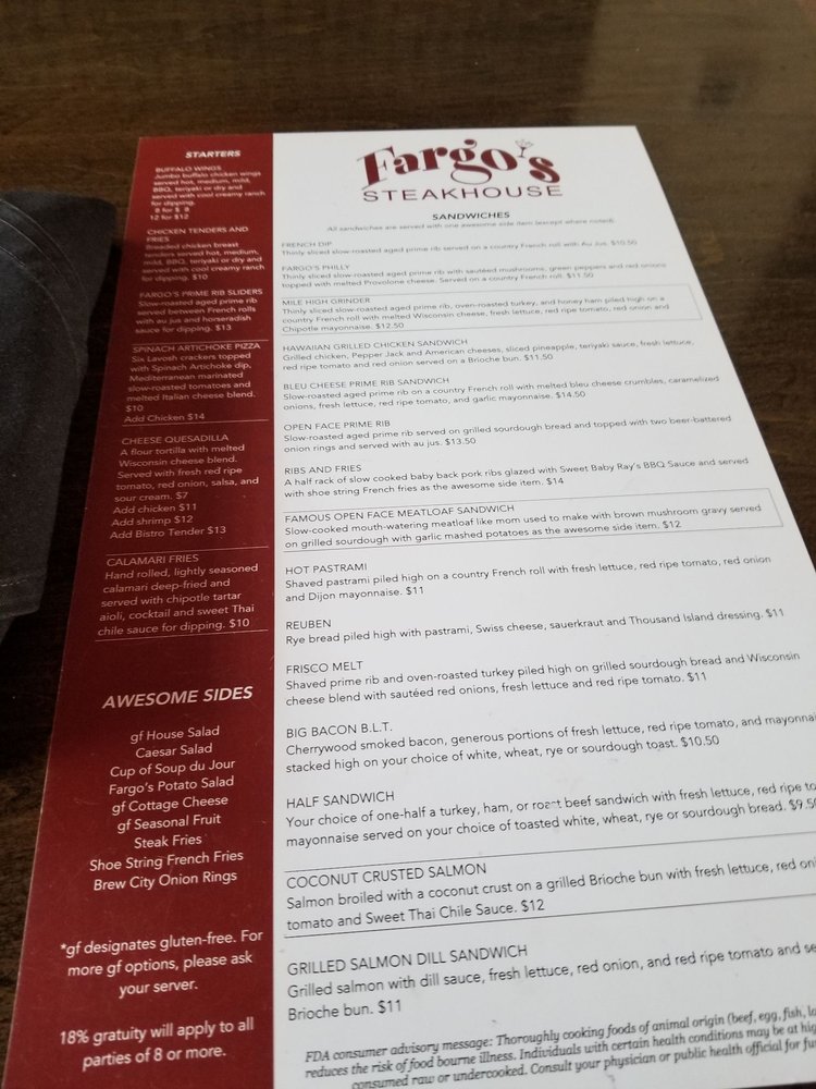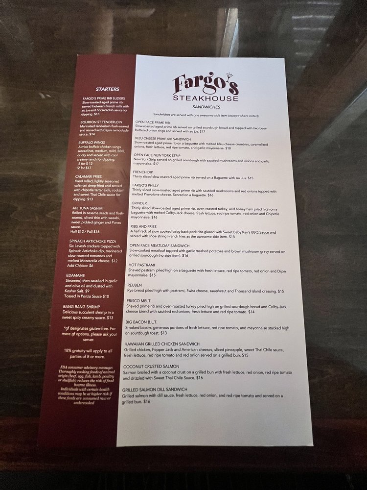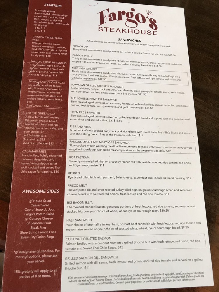 Guests can indulge in a lively atmosphere with moderate noise and enjoy outdoor seating while watching their favorite games on TV. Fargo's also boasts a full bar, making it an ideal spot for happy hour specials. The desserts, like the enormous carrot cake, are a must-try!